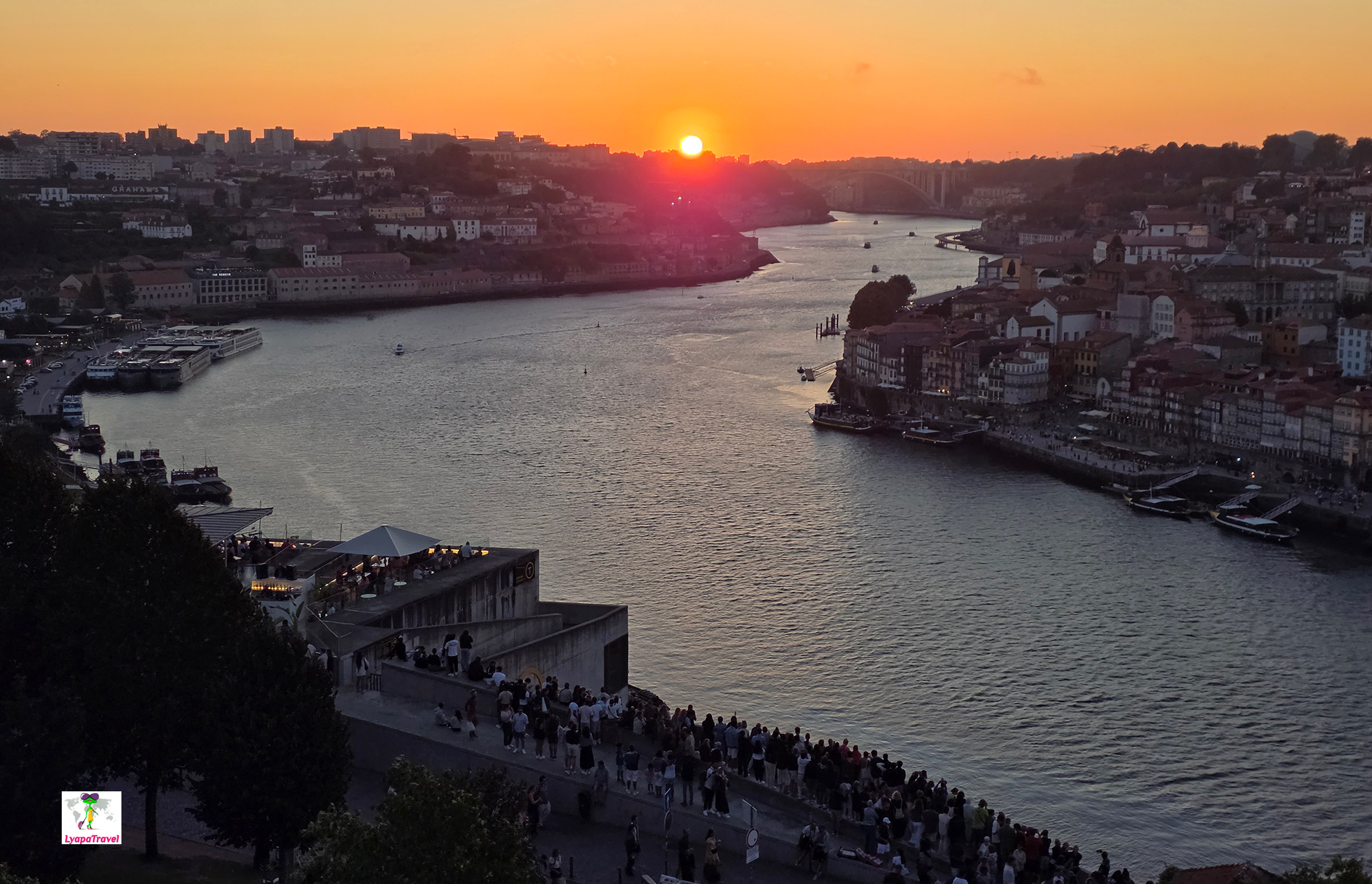 Тут закат происходит на фоне города и реки Дуэро. В летний сезон место на смотровой площадке Miradouro da Serra do Pilar следует занимать за полчаса до заката. Ниже на видео показано количество людей встречающих закат в парке "Jardim do Morro". Парк "Jardim do Morro" - громкое название, по сути это кусочек зеленой поляны для встречи заката) После заката можно прогуляться до смотровой площадки Marginal de Gaia. Прогулка к ней проходит по мощенным улочкам и ступенькам - видно как после закат зажигаются огоньки. К моменту как вы спуститесь к Marginal de Gaia - город уже будет светиться волшебством на фоне наступившей темноты!